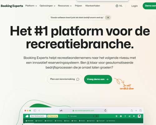 Booking Experts biedt een compleet platform voor reserveringen en marketing in de recreatiebranche. Met functies als channel management, direct zoeken & boeken, dynamic pricing en uitgebreide koppelingen helpt het systeem ondernemers slimmer en efficiënter werken. Dankzij uitgebreide statistieken stuur je gericht je marketing bij en zie je precies wat campagnes opleveren.