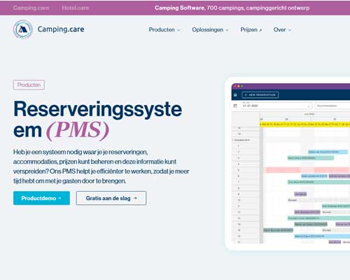 Camping.care is een cloudgebaseerd reserveringssysteem, ontwikkeld door mensen met jarenlange hospitality-ervaring. Het combineert reserveringssoftware, channelmanagement en een kassasysteem in één gebruiksvriendelijk pakket met een uitstekende prijs-kwaliteitverhouding. Inmiddels vertrouwen ruim 700 campings in Europa op Camping.care. Met meer dan 120 samenwerkingspartners – waaronder TenZer en Holli – sluit het systeem naadloos aan op de praktijk van de recreatieondernemer.