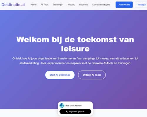 Destinatie.ai is een platform van AI-expert Chris van Vleuten, speciaal ontwikkeld voor de recreatiebranche. Ondernemers kunnen er praktische trainingen volgen en experimenteren met AI-tools. Chris deelt zijn kennis als spreker en redacteur bij Pretwerk en helpt bedrijven ontdekken hoe AI direct toepasbaar is in hun dagelijkse praktijk.