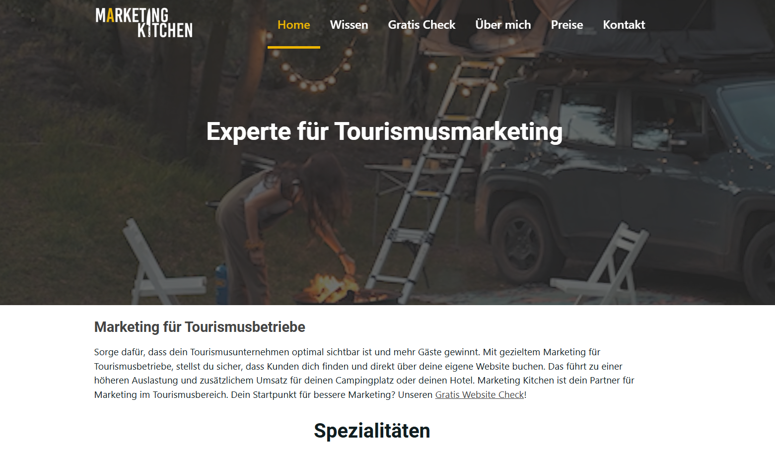 Marketing Kitchen is het bureau van een Nederlandse online marketingspecialist die vanuit Oostenrijk werkt voor recreatiebedrijven. Met veel ervaring in Duitsland en Oostenrijk helpt hij ondernemers hun online zichtbaarheid vergroten. Hij zette onder andere Ich Bin Max op de kaart – de Duitse versie van Holli – en weet precies hoe marketing en recreatie elkaar versterken.